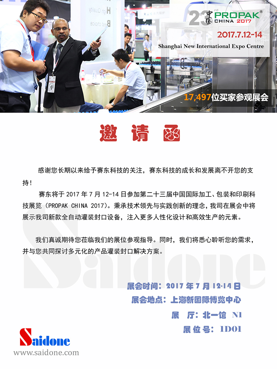 【概要描述】賽東將于2017年7月參加Propak China 2017